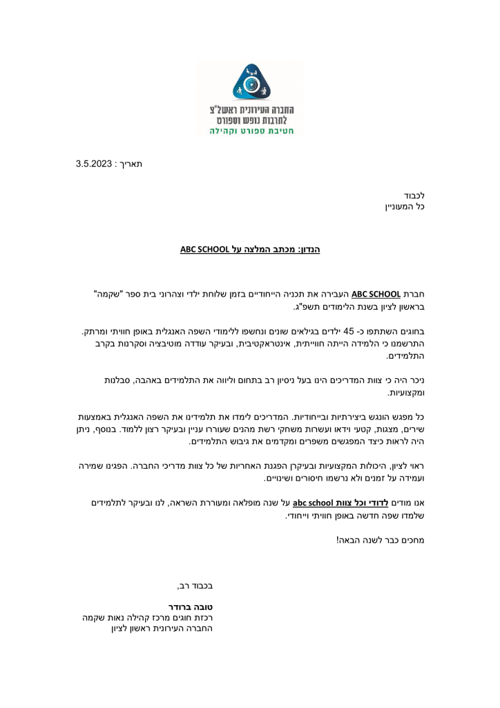 דיבור ותקשורת בשפה המדוברת. בנינו תוכנית מלהיבה שבליבה ההבנה שיצירת אווירה חיובית